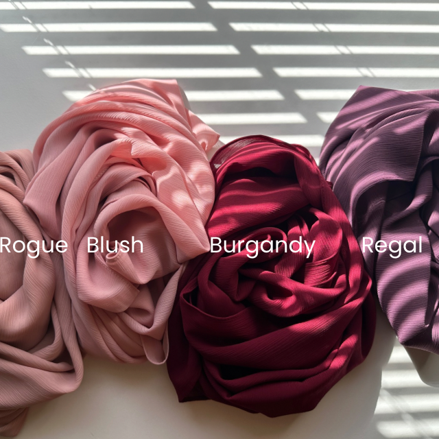Our crinkle chiffon hijabs are light weight and effortlessly elegant,designed for comfort and style. Its low maintainence and wrinkle free, while the almost opaque finish offers good coverage.
